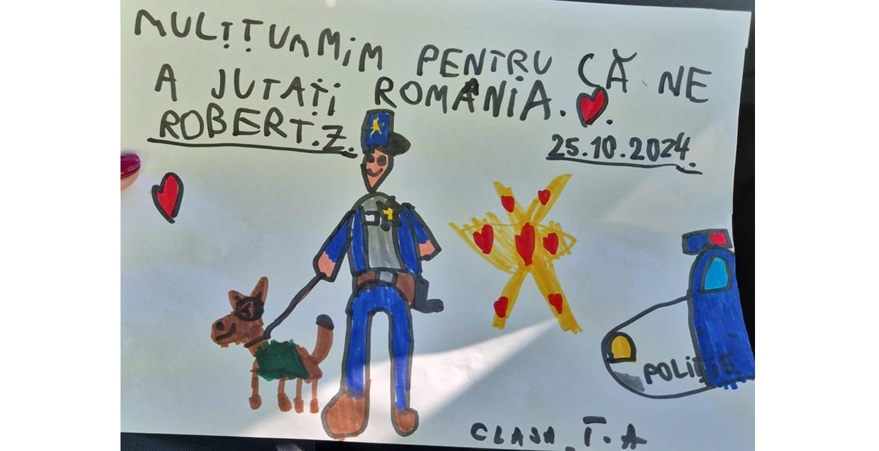 La finalul activității, polițiștii au primit cu bucurie un desen realizat de unul dintre copii, care a făcut cât o mie de cuvinte.