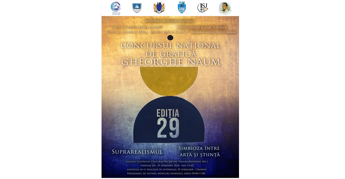 Cea de a XXIX-a ediție a Concursul Național de Grafică „Gheorghe Naum” își va premia astăzi câștigătorii. La ora 13:30, la Galeria Centrului Cultural Nicăpetre din Brăila va avea loc vernisajul expoziției cu lucrările prezentate în cadrul concursului și festivitatea de premiere.
