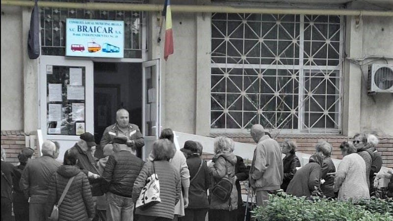În fața sediului Braicar, de pe Bulevardul Independenței, zeci de pensionari stau la coadă, sprijiniți în bastoane și cu dosarele în mâini. Așteaptă, în picioare, sub cerul liber să își prelungească valabilitatea abonamentelor gratuite sau subvenționate cu 50%.