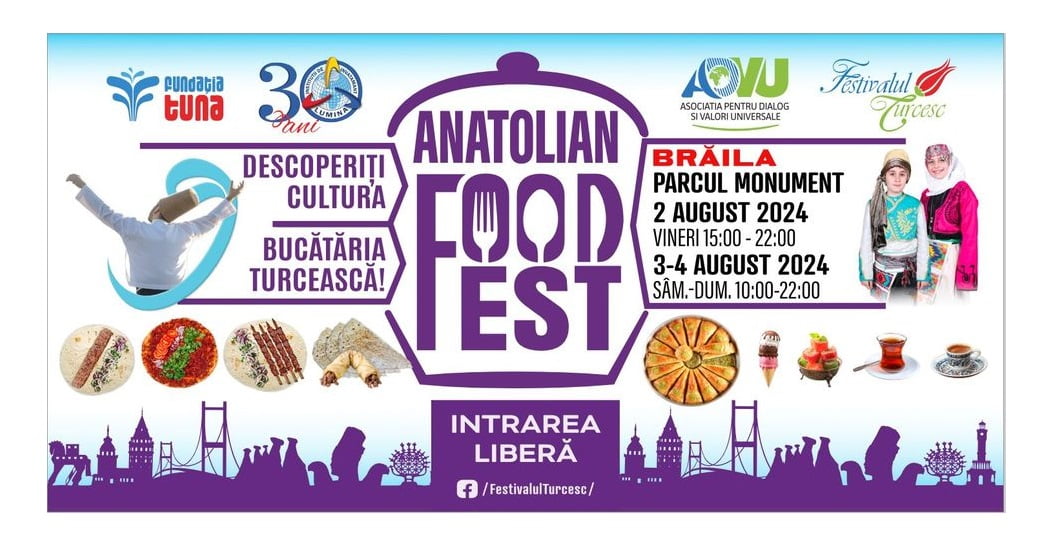 Premieră la Brăila: în perioada 2-4 august, în Parcul Monument din municipiu se va desfășura Anatolian Food Fest, organizat de Festivalul Turcesc și Fundația Tuna.