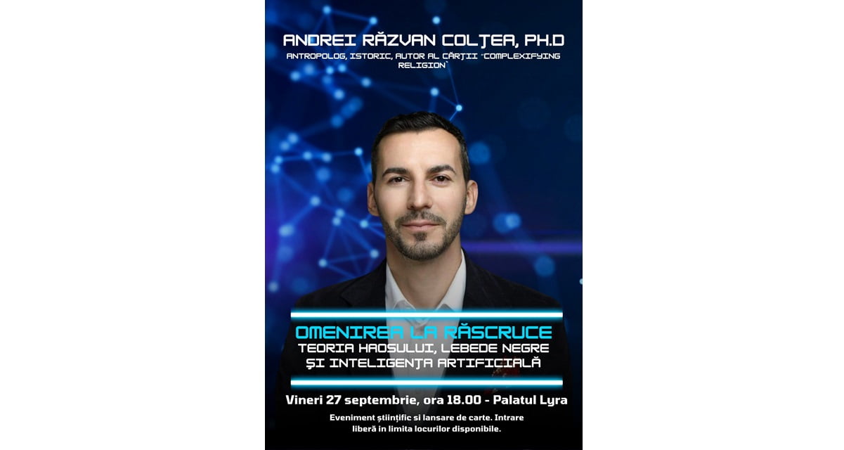 Vineri, 27 septembrie, la ora 18.00, la Palatul Culturii Brăilene „Lyra” se va desfășura un eveniment științific care va cuprinde și o lansare de carte: „Omenirea la răscruce: „De la Teoria Haosului la Inteligența Artificială”.